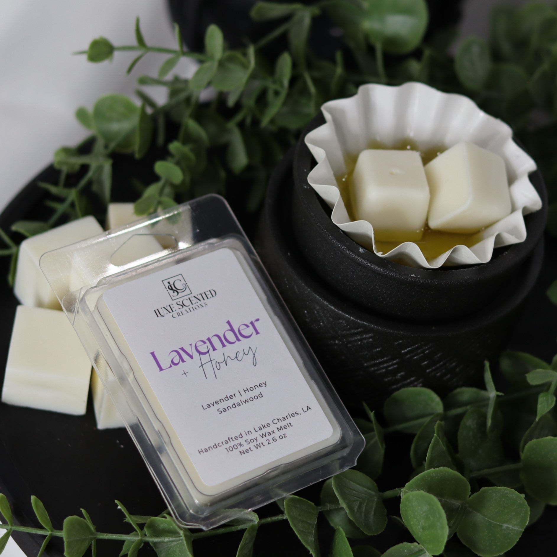 Lavender + Honey creates a calming and inviting ambiance. Lavender mixed with fresh herbs, complemented by the wild honey, all wrapped in the warmth of sandalwood.